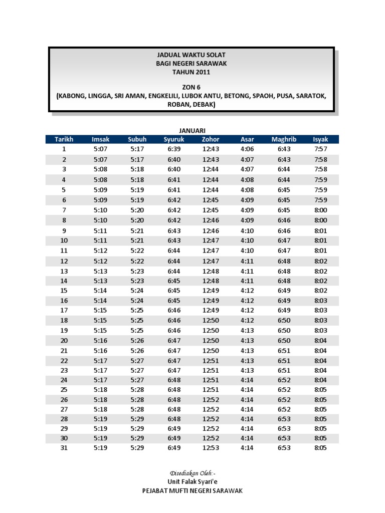 Jadual Waktu Solat Bagi Negeri Sarawak Tahun Pdf